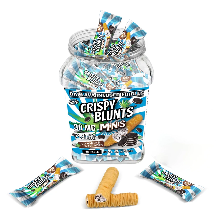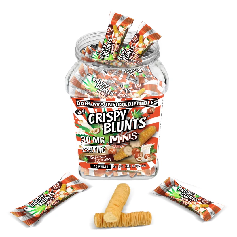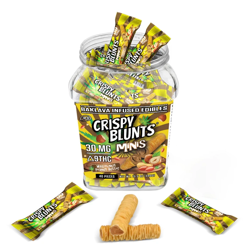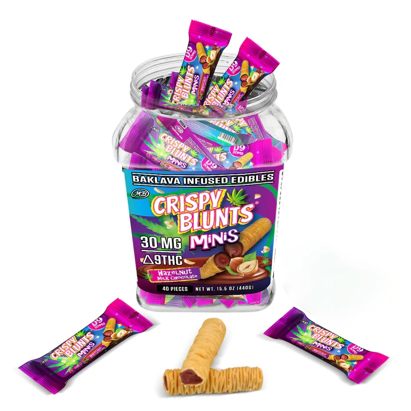 Crispy Blunts provide a satisfying crunch, a creamy consistency, and an irresistible flavor – a surprising blend of tastes and sensations amplified with 100mg of Delta 9 THC.