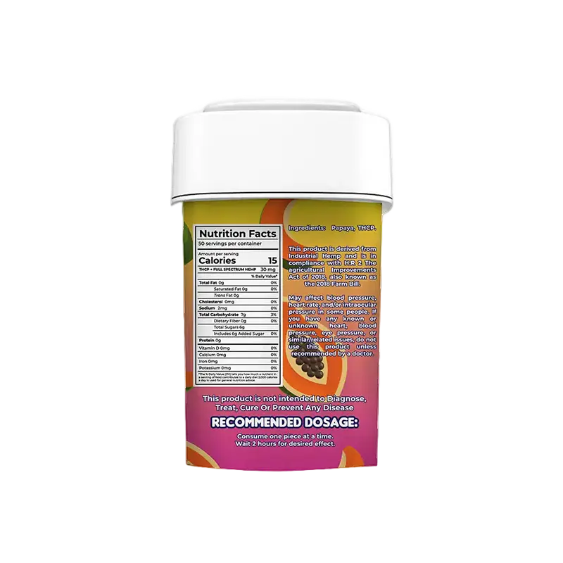 Experience the potent blend of THC-P and HHC with the THCP Papaya Chunks Dried Fruit. Each candy offers a flavorful and discreet way to enjoy cannabis in Dallas, Texas.