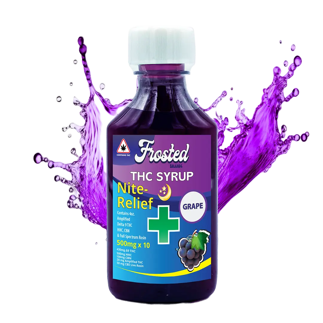 Experience ultimate relaxation and a restful night’s sleep with Nite Relief THC Syrup by Frosted Brands, available in Dallas, Texas. Enjoy the potent blend of Delta 8, Delta 9, HHC, CBD, and CBN.