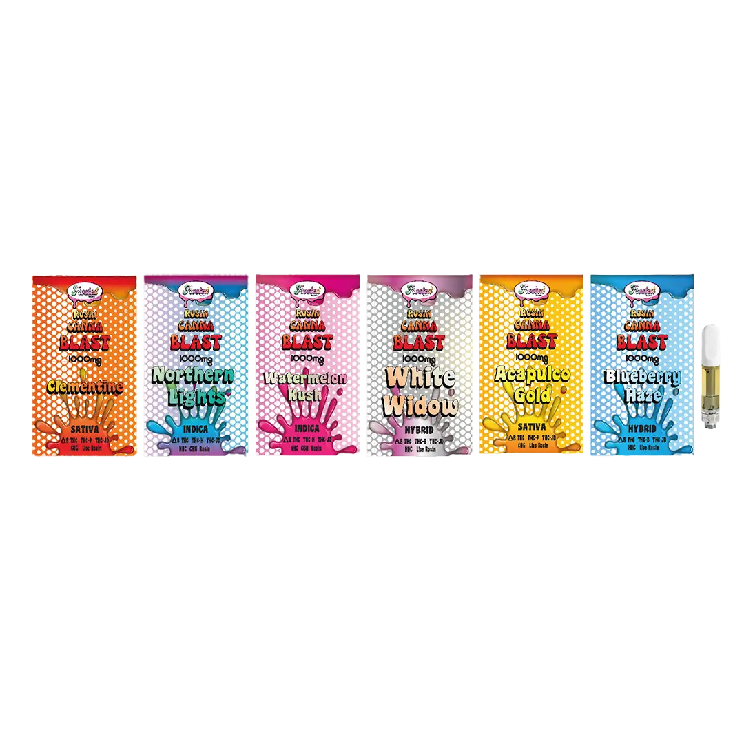 The premium Rosin Canna Blast Cartridges, available in Dallas, Texas, offer a potent blend of Delta 8 THC, THC-B, THC-JD, HHC, and Live Rosin for a truly elevated experience.