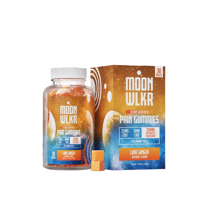 Discover CBD:CBG Pain Gummies – Lime Ginger by MoonWlkr, available in Dallas, Texas. Each gummy offers 25mg of CBD, 10mg of CBG, and 200mg of turmeric for effective pain relief and inflammation reduction.